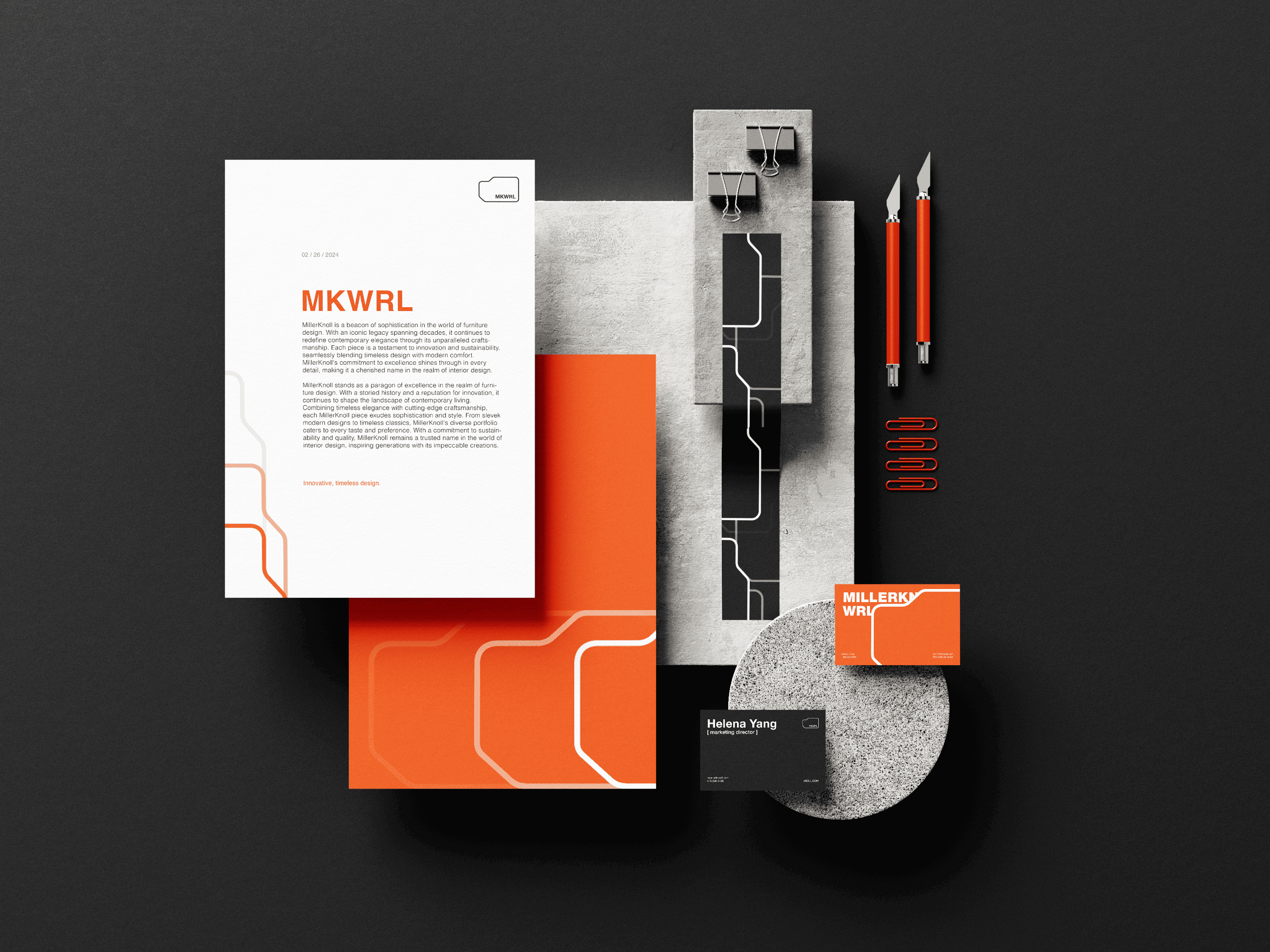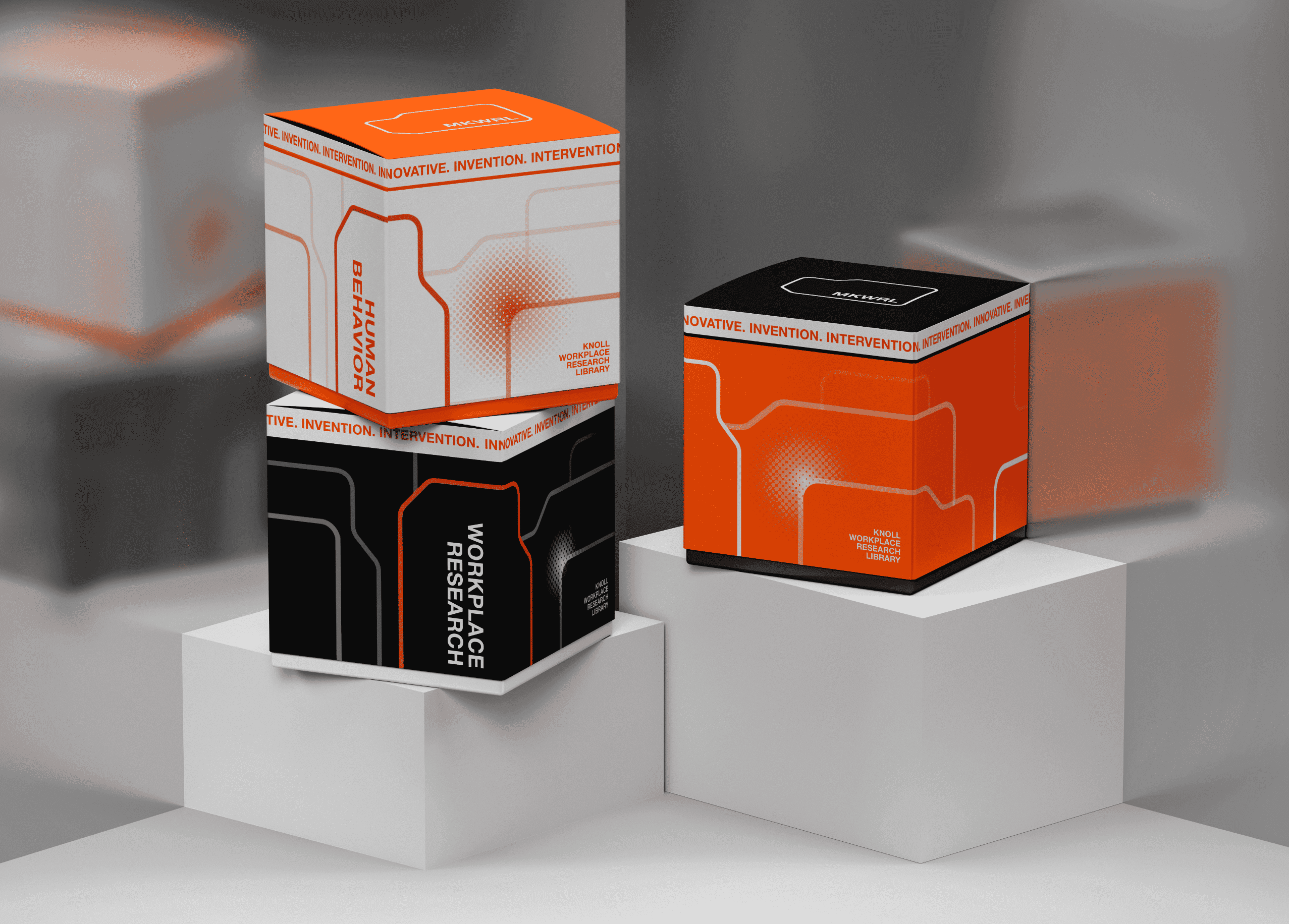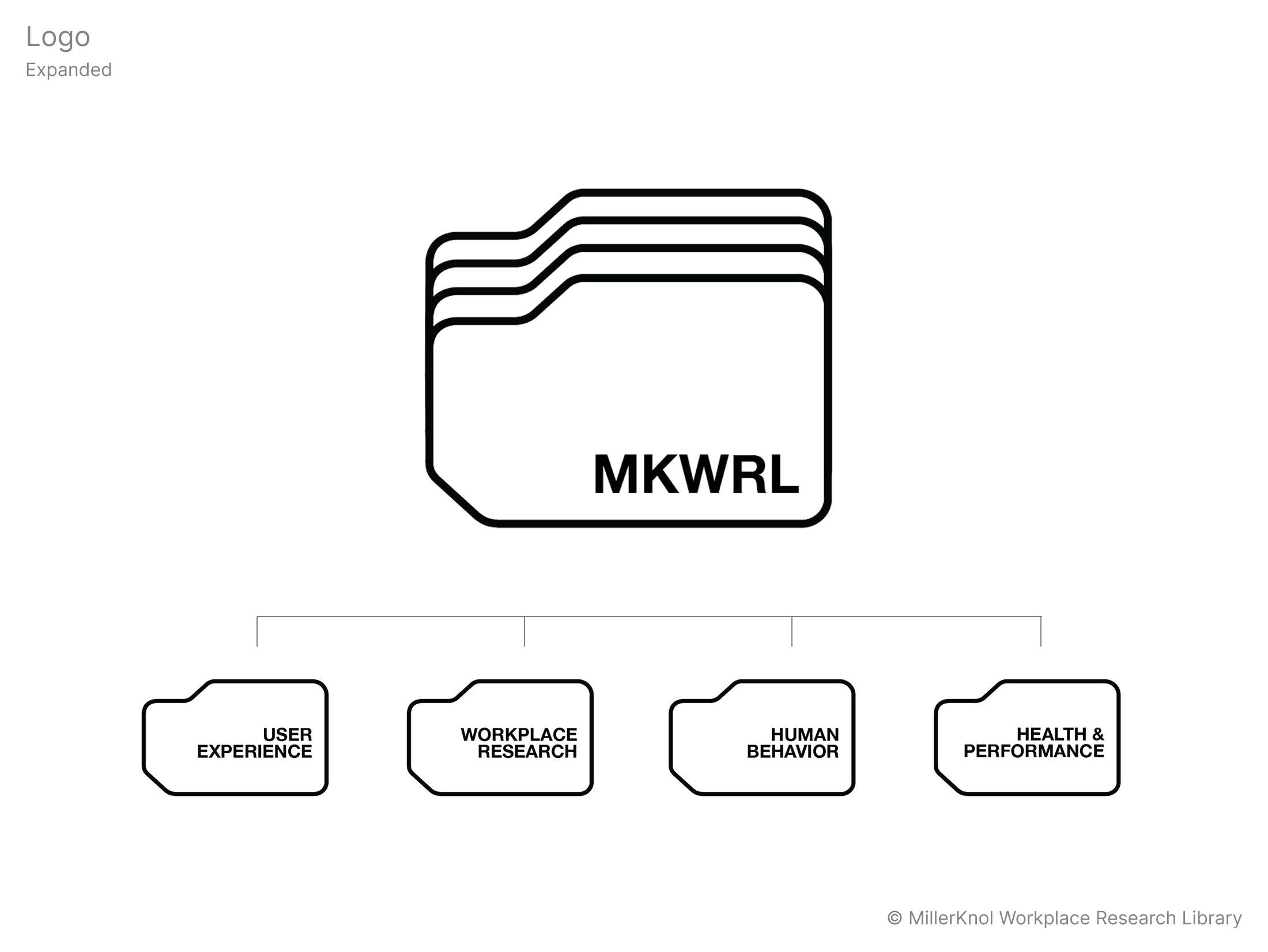 MillerKnoll OVERVIEW Rebranding for MKWRL (MillerKnoll Workplace Research Library) with the concept of stacked files that functions as an archive